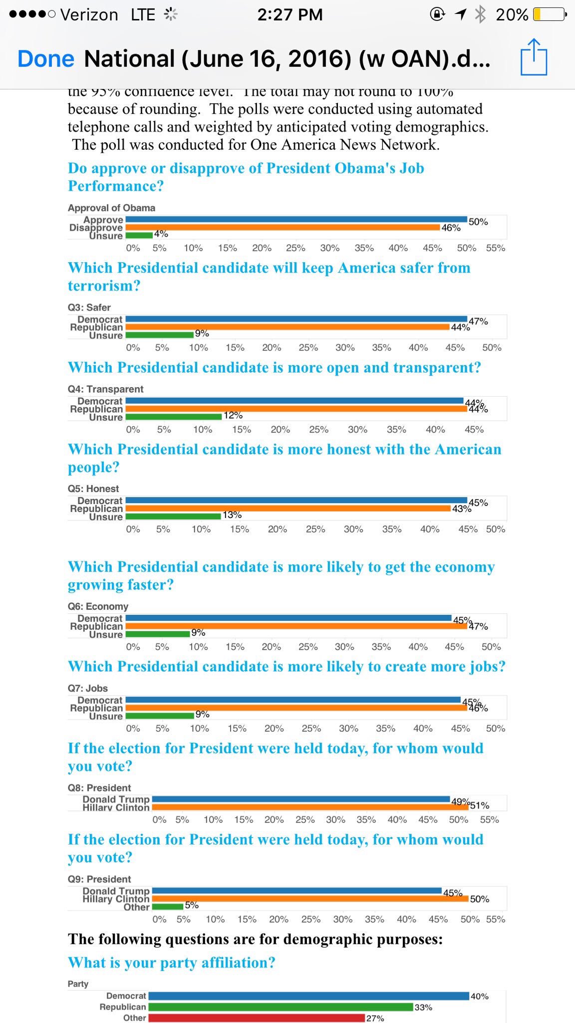 National survey of registered voters was conducted June 16, 2016. Results from the poll conducted May 10, 2016 are in parentheses.